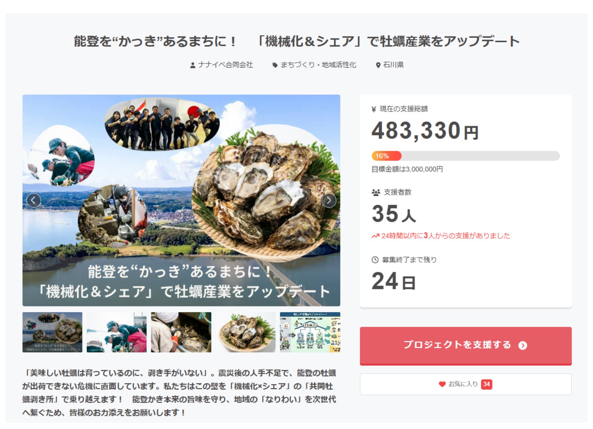 「美味しい牡蠣は育っているのに、剥き手がいない」。震災後の人手不足で、能登の牡蠣が出荷できない危機に直面しています。私たちはこの壁を「機械化×シェア」の「共同牡蠣剥き所」で乗り越えます! 能登かき本来の旨味を守り、地域の […]